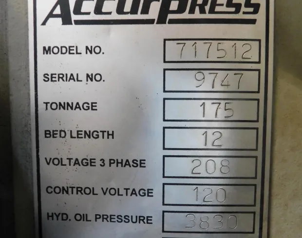 17512ACC-9747 ACCURPRESS HYD. PRESS BRAKE, MODEL#717512