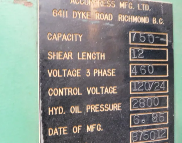75012ACC-450 ACCURSHEAR 875012 HYDRAULIC SHEAR