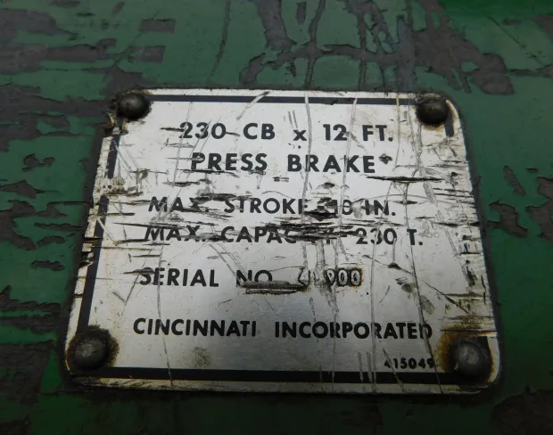USED, CINCINNATI 230CBX12 CNC HYDRAULIC PRESSBRAKE