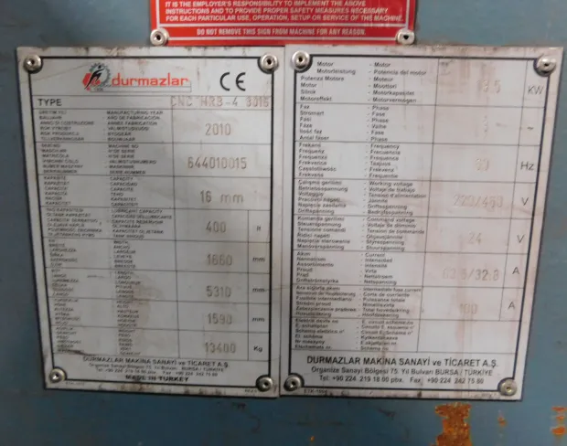 62510DUR-644010015 DURMA HRB4 3016 CNC 4-ROLL HYDRAULIC ROLL